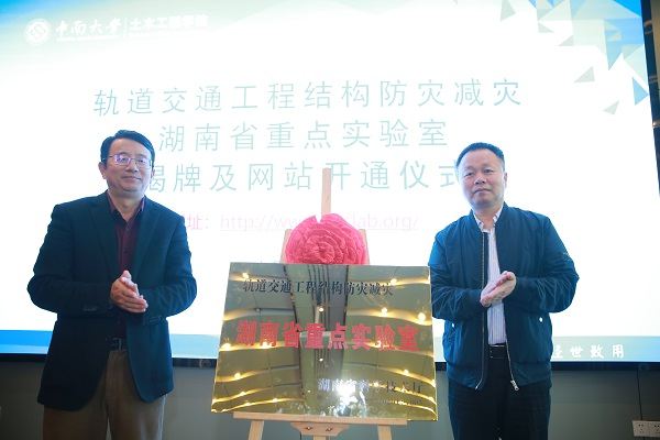 2021年4月17日上午,轨道交通工程结构防灾减灾湖南省重点实验室(Hunan Provincial Key Laboratory for Disaster Prevention and Mitigation of Rail Transit Engineering Structures)首届学术委员会第一次会议暨揭牌仪式在铁道校区世纪楼14楼会议室召开。中国工程院院士、湖南大学陈政清教授,西南交通大学副校长何川教授,国际桥梁及结构工程协会主席、同济大学葛耀君教授,湖南省科技厅基础研究处处长彭敬东,beat365在线唯一官网副校长陈春阳、科研部部长李启厚、副部长王敏,高速铁路国家工程实验室主任、beat365在线唯一官网教授余志武等实验室首届学术委员会成员、湖南省科技厅主管部门领导、校领导、学院领导、联合共建单位专家及实验室科研骨干等近50名专家学者参与了本次会议。会议由实验室学术委员会主任陈政清院士和beat365在线唯一官网科研部部长李启厚教授分阶段主持。