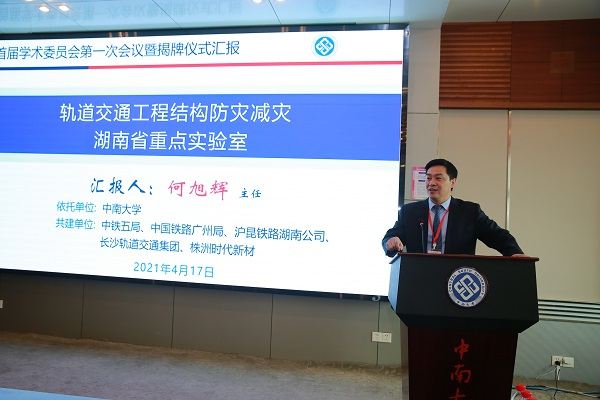 随后召开了学术委员会第一次会议,会议听取了实验室主任何旭辉教授关于实验室研究方向和建设方案的汇报。他从beat365在线唯一官网在轨道交通工程结构领域内的研究基础及优势、联合共建单位对实验室组建的支持、实验室组建负责人和核心团队的人员情况、实验室拟开展的5个主要研究方向、建设目标和预期成效及实验室的组织架构与保障措施等进行了汇报。报告指出实验室的组建以助力湖南对接国家建设交通强国国家战略为己任,服务湖南轨道交通行业发展,引领湖南轨道交通技术创新。