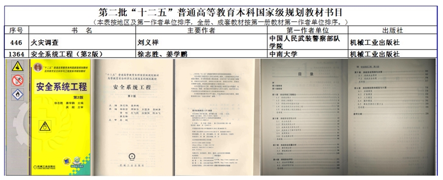 3、高等消防工程学(徐志胜、孔杰主编),“十三五”国家重点出版物出版规划项目;湖南省优秀研究生教材